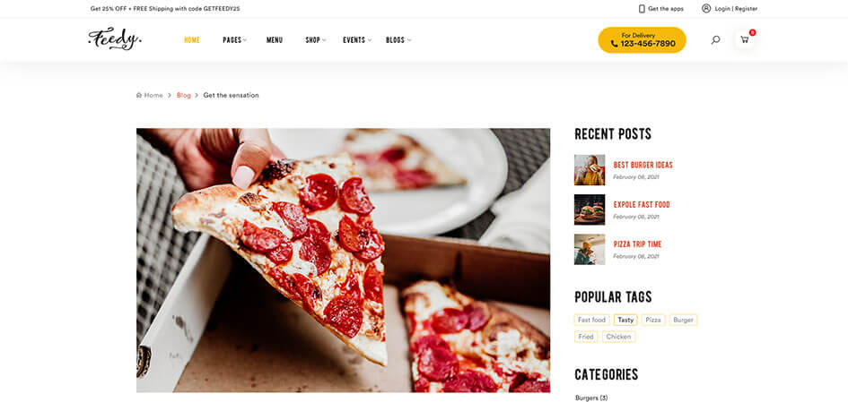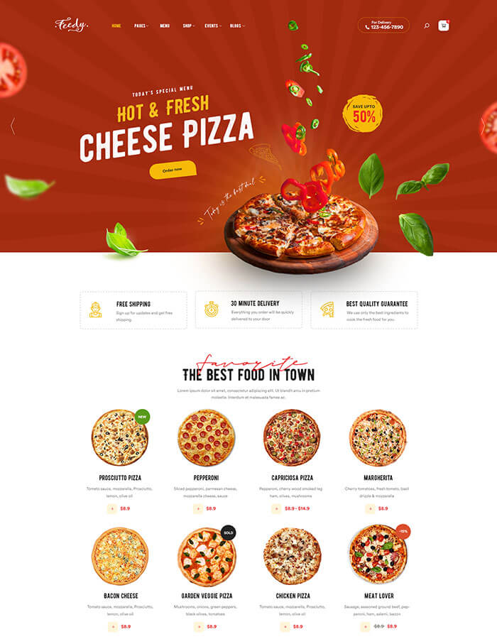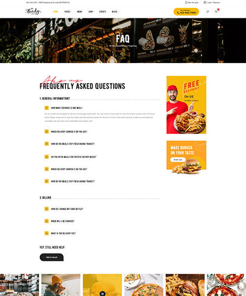No need for third-party plugins or additional expenses. Feedy design and develope for fast food industry and other online delivery related business site with ready-made designed page templates and intuitive page builder.