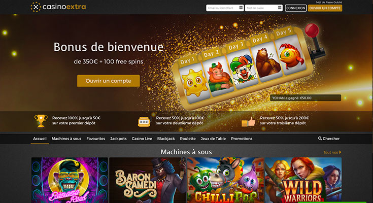 L’un des premiers éléments que nous examinons est toujours l’offre de bienvenue, et sur ce point, Extra Casino sait comment accueillir ses nouveaux membres. Nous avons découvert une offre particulièrement attrayante, conçue pour booster vos premières sessions de jeu. Le package de bienvenue se décline sur vos trois premiers dépôts, ce qui est une excellente nouvelle pour gérer son budget de départ.